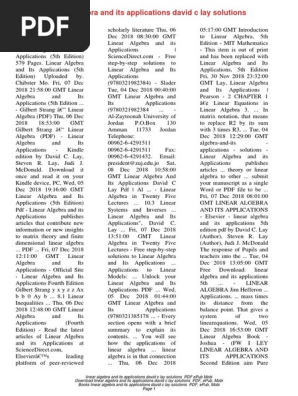 This listing is for Linear Algebra and Its Applications 3rd Edition This edition is very similar to the most current updated edition ISBN 032198238X and 0135851254 and 013684748X and 0135851157 Please be sure to buy. Download Free PDF. Pennock Associate Professor of Mechanical Engineering Purdue University Joseph E.